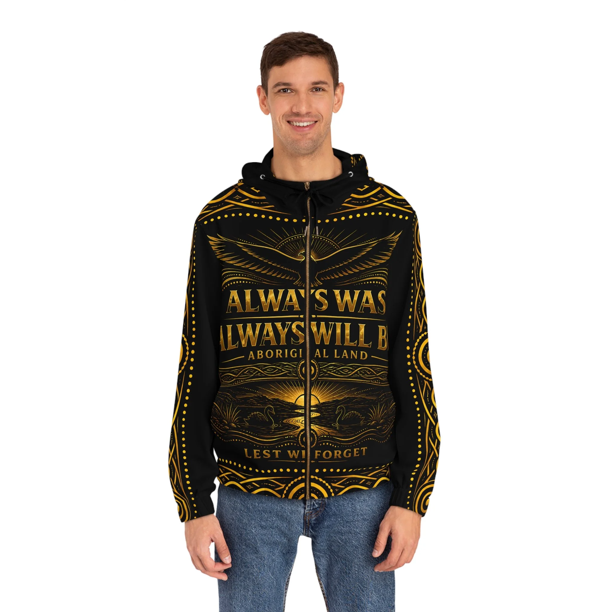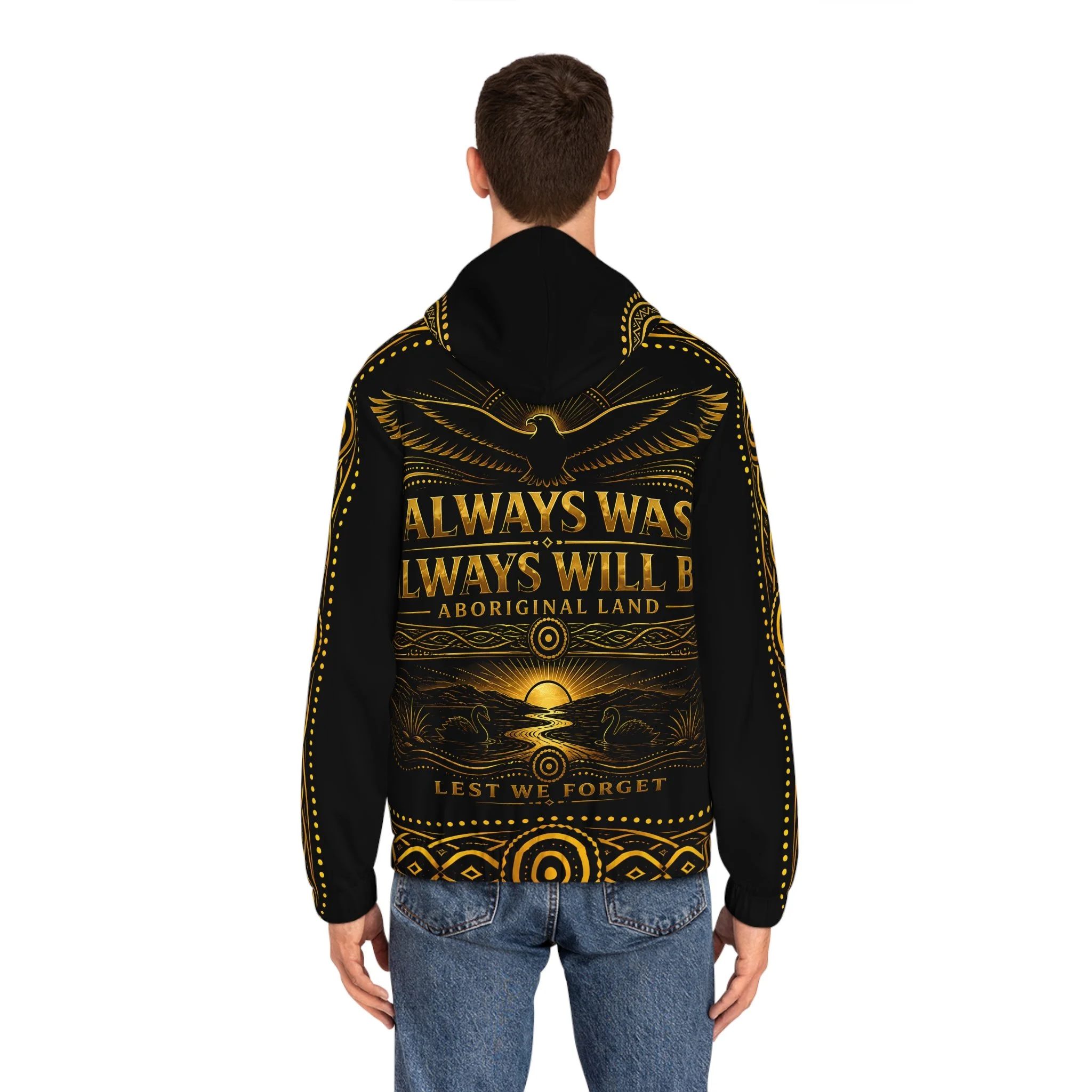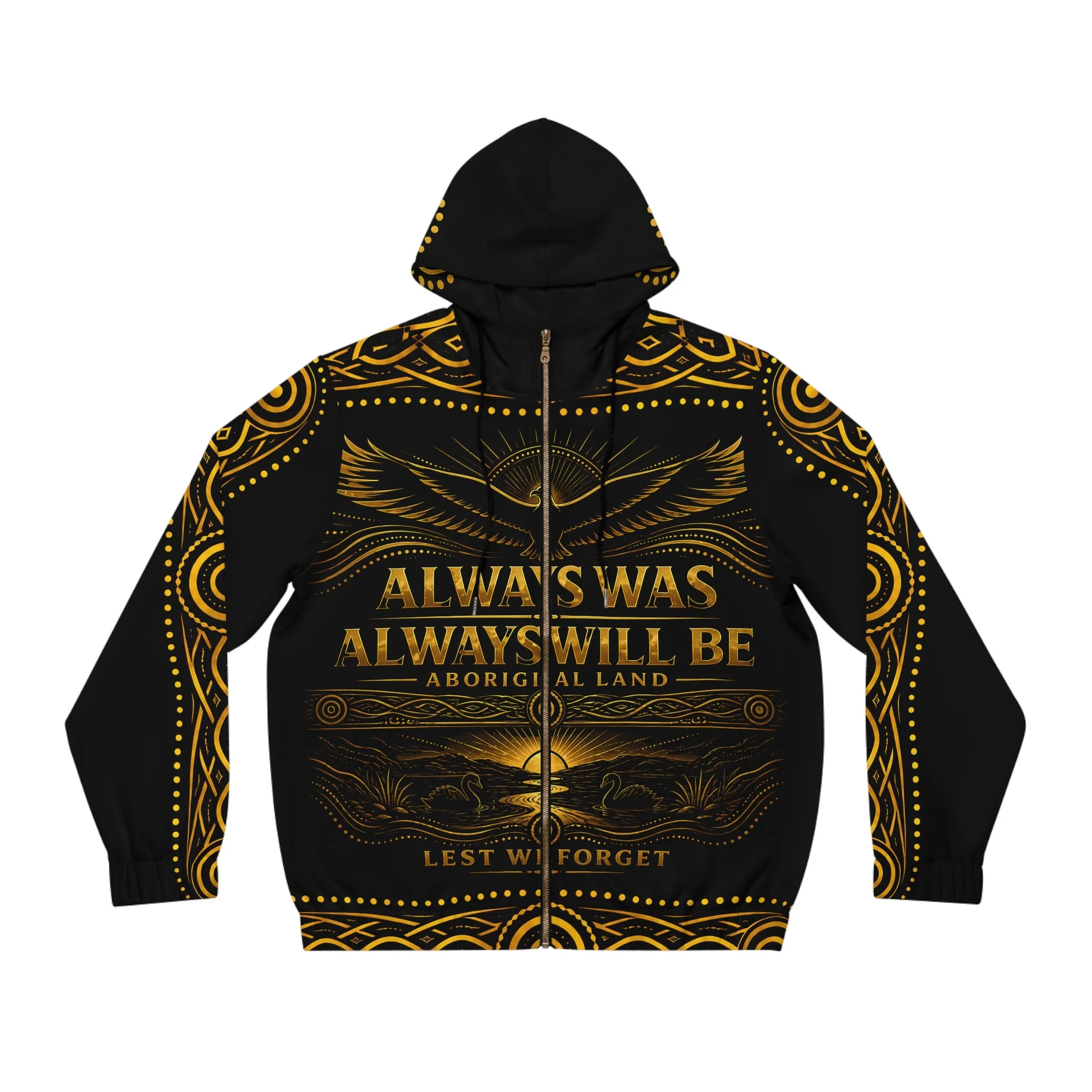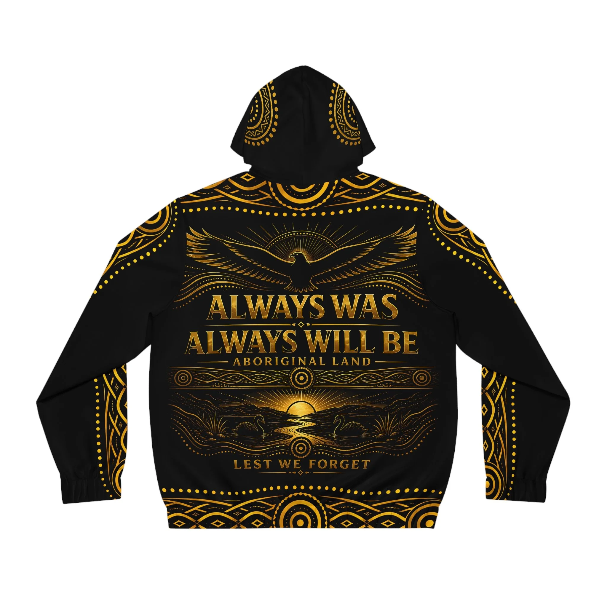 A full-zip hoodie that speaks in quiet confidence. The phrase “Always Was Always Will Be” sits at the heart of the design—a steady reminder of continuity, pride, and belonging. Lightweight and slightly stretchy, the fabric moves with you whether you’re walking the city streets at dusk or layering up for a coastal campfire. The adjustable hood and slanted front pockets add everyday utility, while the gold metal zipper gives a subtle, honest edge. This hoodie settles into your routine: mornings with coffee, long drives where you hum along to an old playlist, or evenings when you want something that feels like a steady companion.